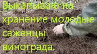 Выкапывю на хранение молодые саженцы винограда.