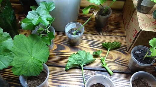 Результаты укоренения пеларгонии листочком с пяточкой. И ещё раз покажу, как вырезаю пяточку
