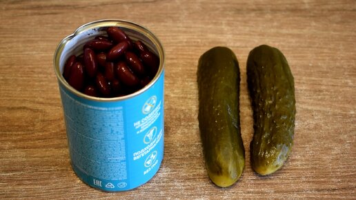 Беру банку фасоли и солёные огурцы. Готовлю потрясающий салат. Вкусный рецепт из простых продуктов (делюсь рецептом)