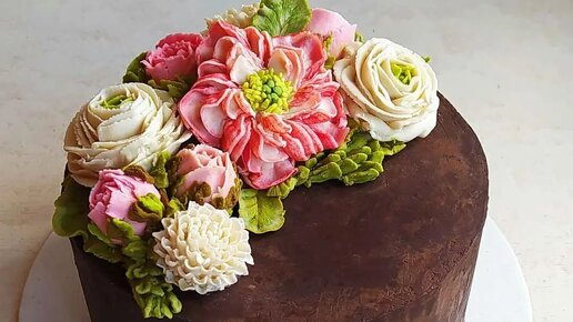 Красивый торт. Идея оформления торта цветами из крема. / bean paste/ bean paste flowers cake