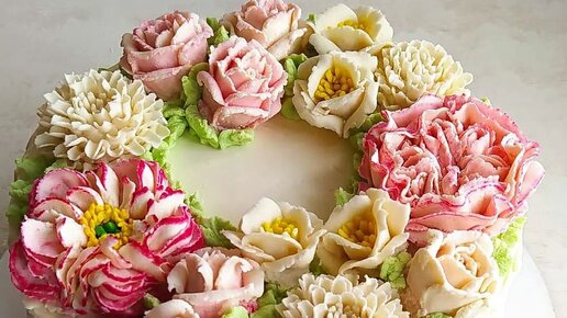 Красивый торт. Торт с цветами из крема. Цветочная композиция из фасолевой пасты/bean paste.