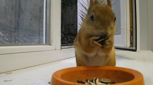 Белка лихо грызет семечки, обе щеки не обращая на меня внимания.