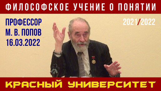 Философское учение о понятии. Профессор Михаил Васильевич Попов. Красный университет. 16.03.2022.