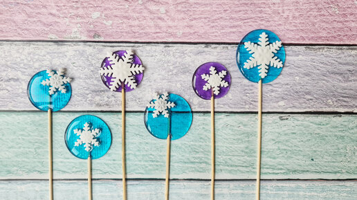 Леденцы из изомальта со снежинками из мастики.
