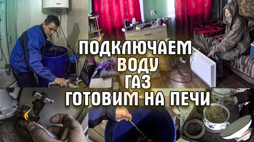 Показываем дом \ готовим на печке\ подключаем газ \ запускаем воду.