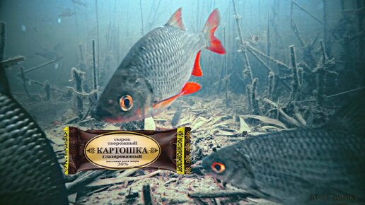 Реакция рыбы на Глазированный Сырок Картошка! Подводная съемка