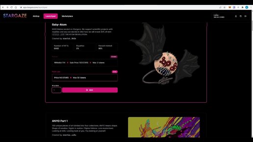 Начисление токенов Stargaze airdrop. Mission 4 Mint an NFT