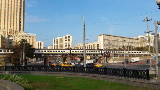 Электричка ЭП2Д следует по мосту у Ленинградского вокзала Москвы 2019 год.