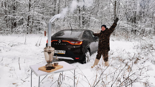 Ура, зима! Рено Аркана. Самовар. Лес. Снег.