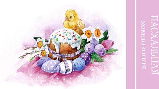 Пасхальная композиция | Рисуем открытку к Пасхе #Пасха #Верба #Нарциссы #кулич