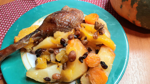 Очень вкусный запечённый гусь с овощами.