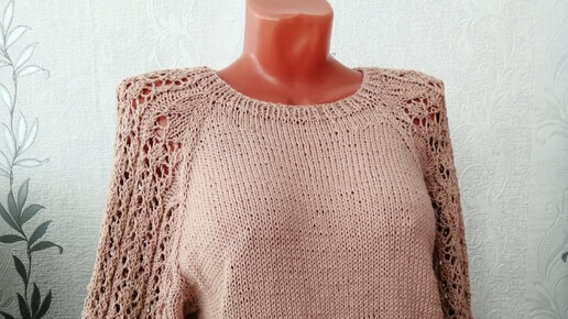 Прекрасный джемпер с ажурными рукавами.