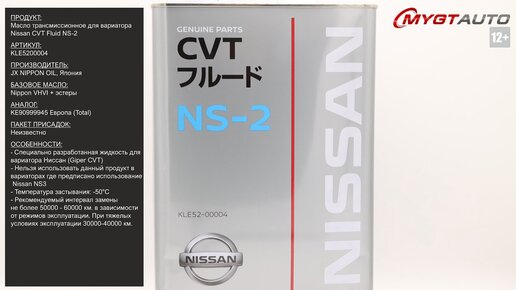 Трансмиссионная жидкость для вариатора Nissan CVT Fluid NS-2 KLE5200004 #ANTON_MYGT