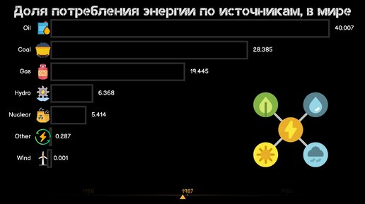 Доля потребления энергии по источникам в мире.Первичные источники энергии.Статистика.Инфографика