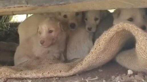 Бродячая собака родила 8 щенков и прятала их под машиной, а охранял малышей хвостатый отец семейства