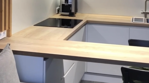 П-образная кухня с антресолями в духе сканди🌿