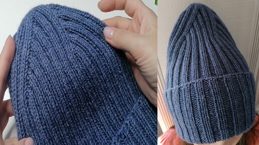 Шапка спицами резинкой 2х2 с красивой диагональной макушкой