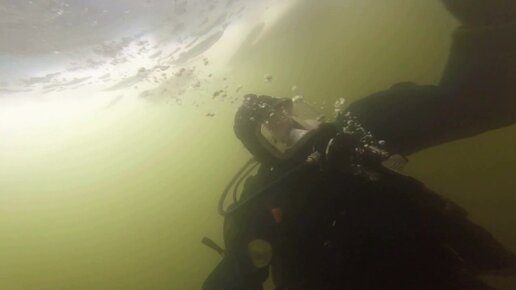 водолаз службы спасения волгоспас под водой