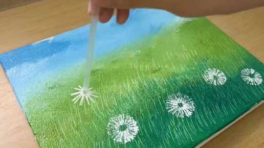 Очень лёгкий способ как нарисовать 🎨поле одуванчиков. Пошаговая техника рисования акрилом для начинающих!👍