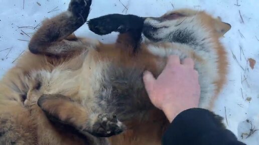 Как лисы реагируют на поглаживание пуза. Покруче некоторых собак