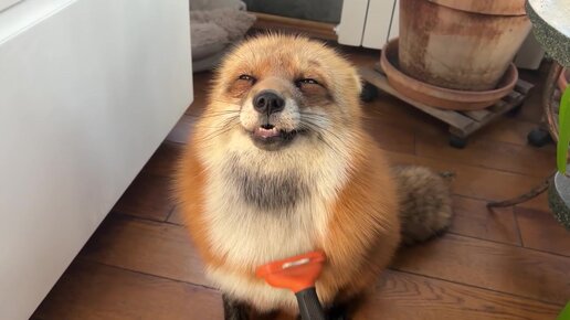 Как лиса сопротивляется поглаживанию, хотя видно что хочет
