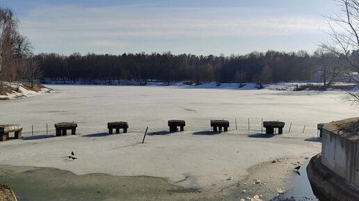 Прогулка в Парке Кузьминки. С наступлением весны и приходом тепла природа оживает. Виды на водопад и пруды во льду. Цены на еду