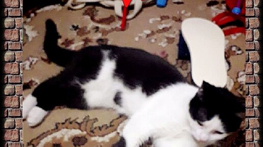 Малыш гладит кота и снимает ролик