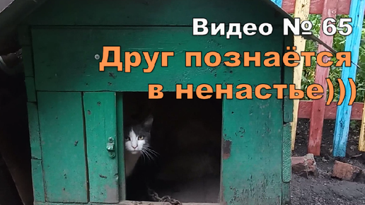 Кошка с собакой спрятались в одной будке.