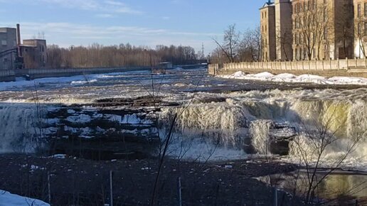 Запуск Нарвского водопада в последний день зимы 2022 г.