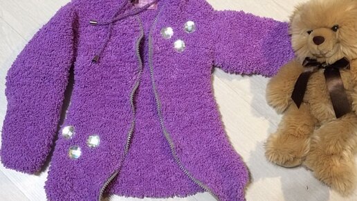Детская курточка спицами из плюшевой пряжи
