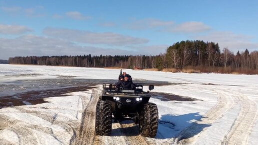 Квадроциклы Сокол Бигфут по тонкому льду в полыньях