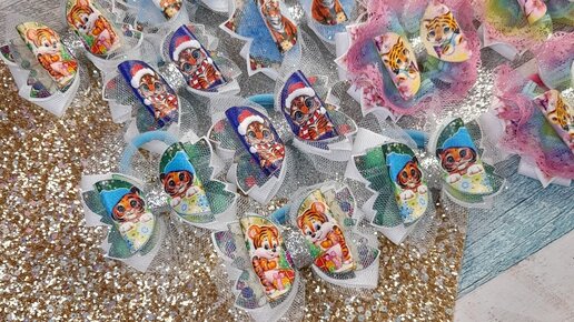 Как сделать из кожзама Новогодний бантик Тигр 🐅 Бантмки Канзаши своими руками