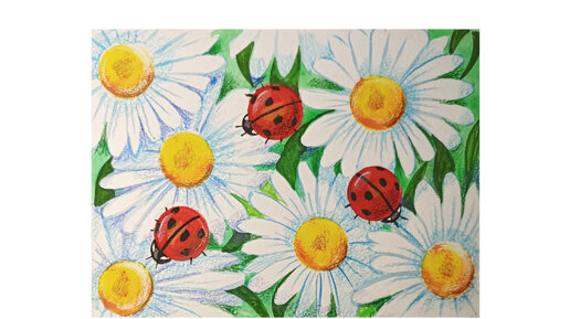 Как нарисовать божьих коровок на ромашковом лугу.