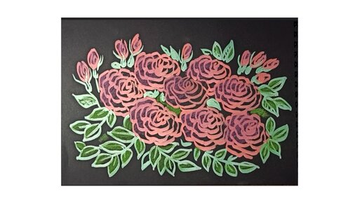 Розовые розы на черном - рисунок фломастерами(металлик).