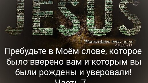 Пребудьте в Моем слове, которое вам было вверено и которым были рождены и уверовали! Часть 7