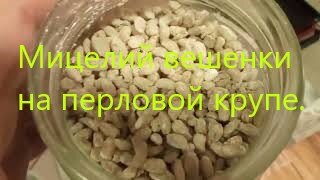 Мицелий вешенки. Результат первого эксперимента и здесь же второй эксперимент на перловой крупе.