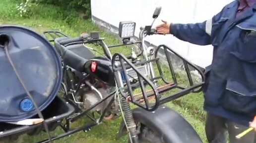 Мотоцикл Скаут-3. Везу в прицепе воду 200 литров