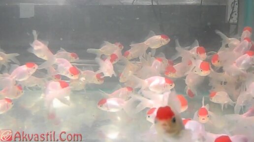 Золотая рыбка - форма Оранда Красная шапочка с белым телом. Аквариумные рыбки. Аквариумистика..mp4