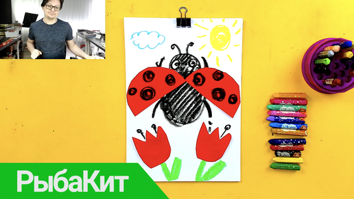 Аппликация для детей - рисуем клеим вырезаем - божья коровка