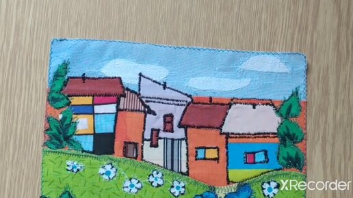 ЯРКАЯ КАРТИНКА ИЗ ТКАНИ С ДОМИКАМИ/ АППЛИКАЦИЯ НА ТКАНИ/СХС