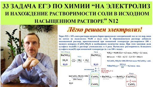 33 задача №12, на электролиз и нахождение растворимости соли в исходном, насыщенном растворе.