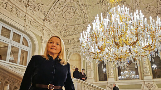 Парадная лестница и уникальная бронзовая люстра на 130 свечей. Юсуповский дворец. Мой Санкт-Петербург