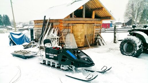 Снегоход СМ-002 и мотособака по северным рекам в снегу.