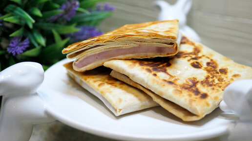 Лаваш с начинкой. Быстрый завтрак или перекус. Квадратики из лаваша.