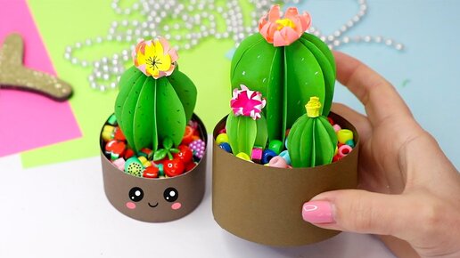 КАКТУС из бумаги - КОРОБОЧКА для мелочей на рабочий стол/Поделки из бумаги для детей