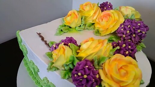 Торт с розами и гортензиями