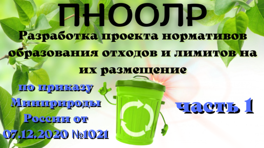 Разработка проекта нормативов образования отходов и лимитов на их размещение (ПНООЛР). Часть 1