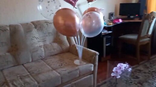 Декорация из 7 шариков на подставке из Фикс прайса.День рождения дочки.