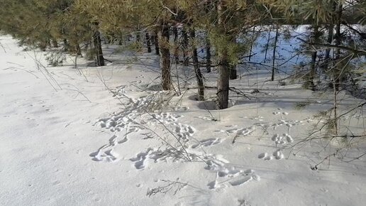 Следы зайцы или лисы. С потеплением, можно увидеть около сада очень много следов. Чьи?