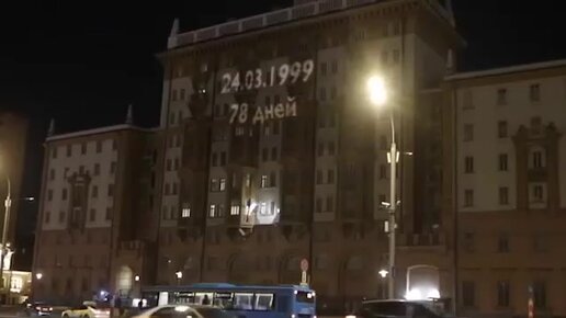 Свет проецируется на посольство США в Москве в ознаменование 23 лет со дня бомбардировки НАТО Югославии